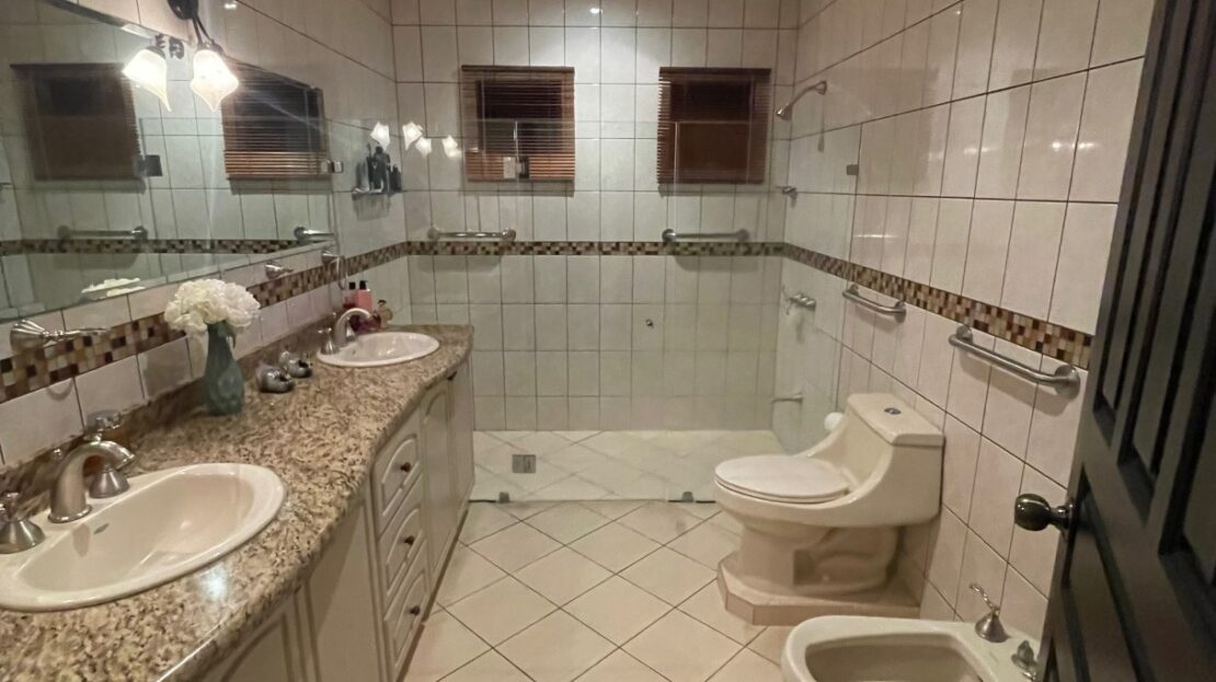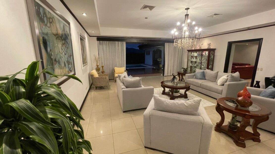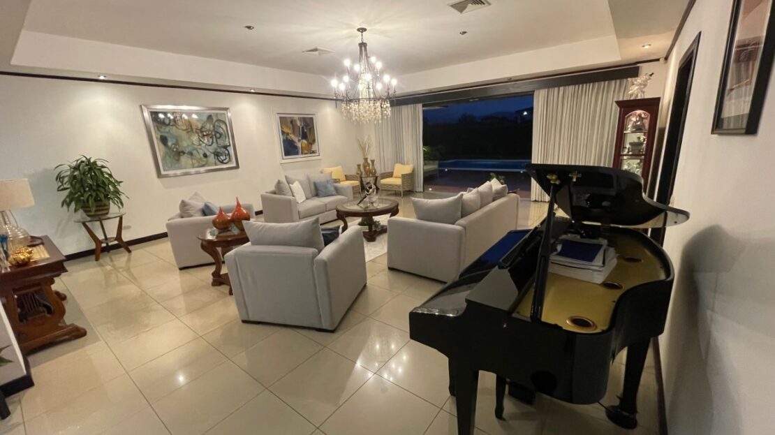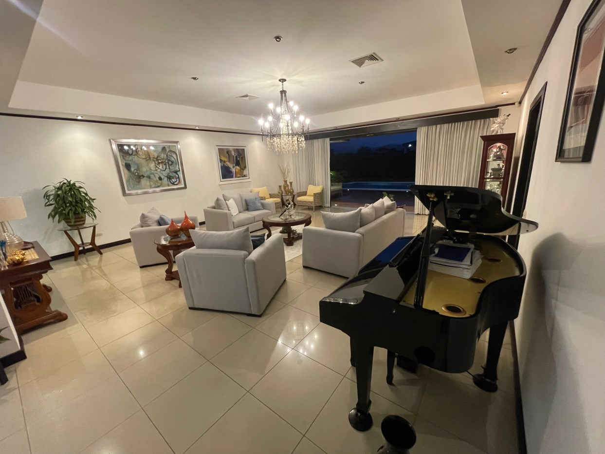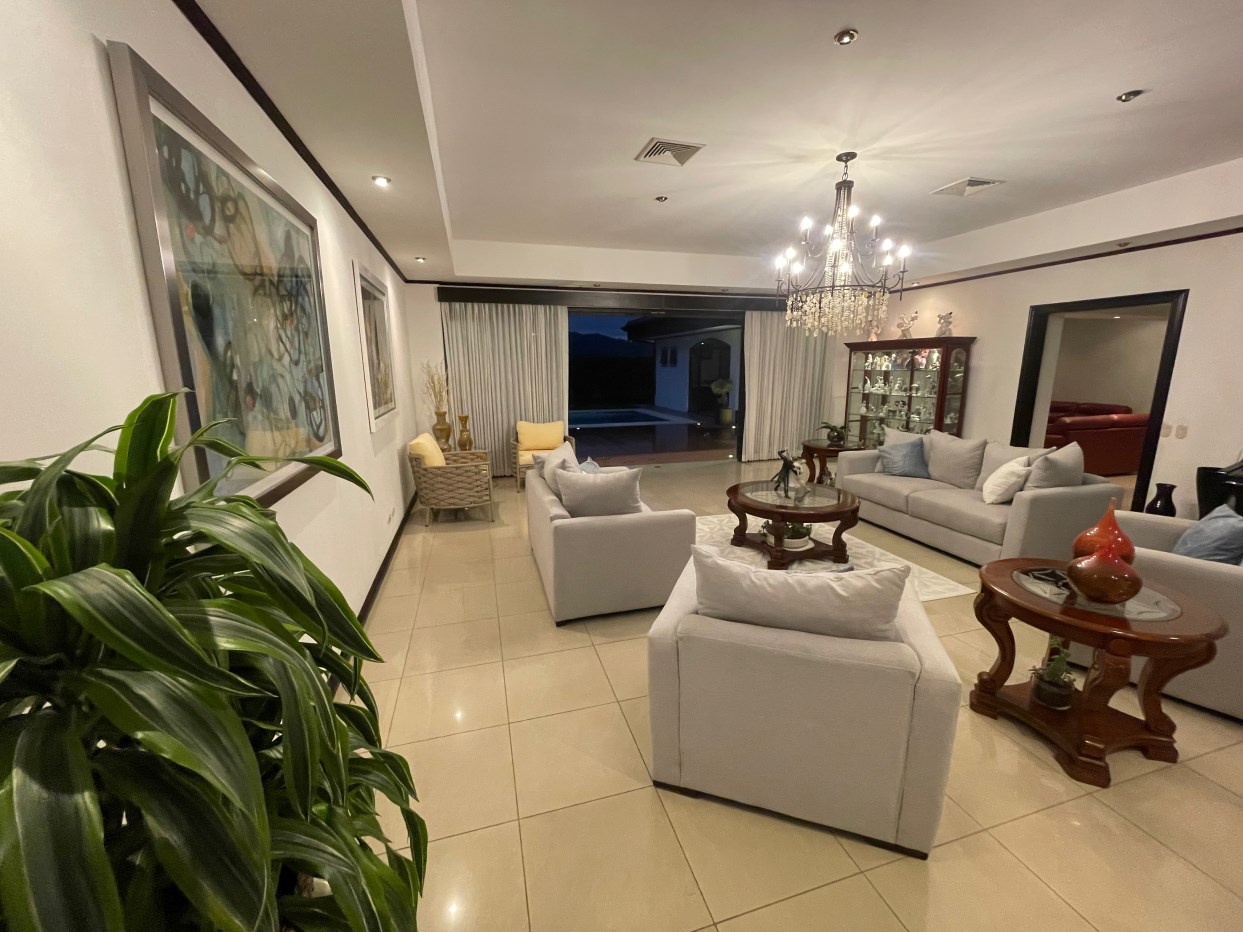 Elegant home in exclusive section Las Vueltas, located in the golf community Los Reyes, located near GSD, CDS and near the 27 close to the free trade zones and Santa Ana/Escazu. This home sits within the added secure section at the end of Los Reyes and features views of the area mountains and is within a short proximity to the the golf course and multi activity private club.