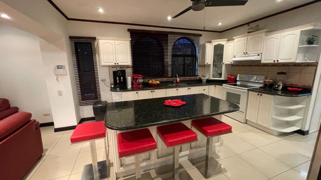Elegante casa en exclusiva sección Las Vueltas, ubicada en la comunidad de golf Los Reyes, ubicada cerca de GSD, CDS y cerca de la 27 cerca de las zonas francas y Santa Ana/Escazu. Esta casa se encuentra dentro de la sección segura adicional al final de Los Reyes y ofrece vistas de las montañas de la zona y se encuentra a poca distancia del campo de golf y del club privado de actividades múltiples.