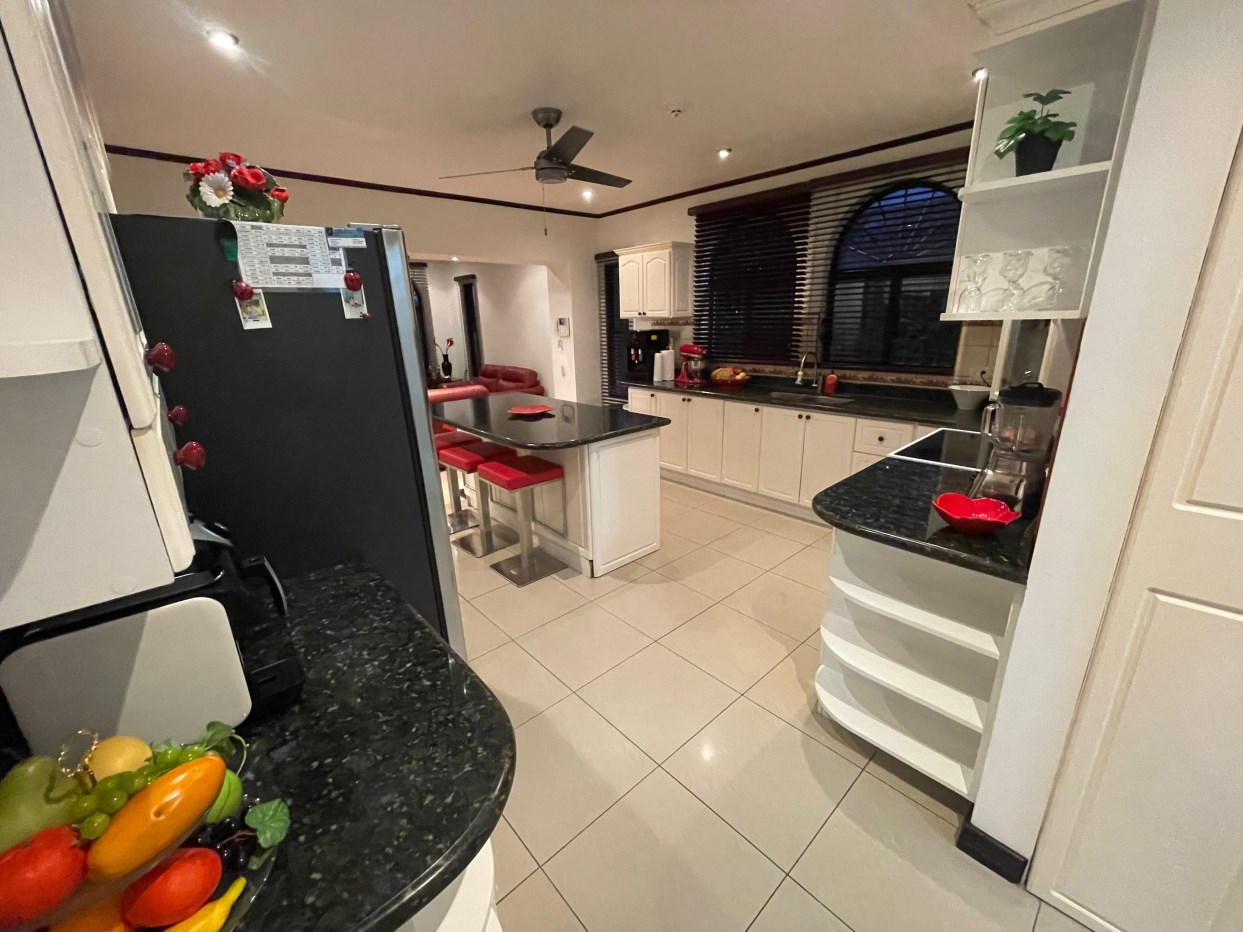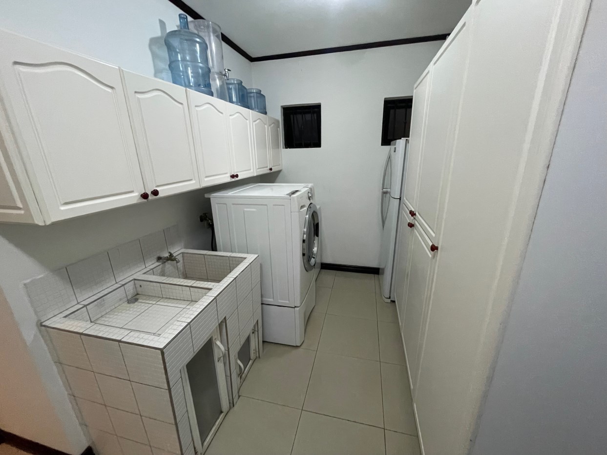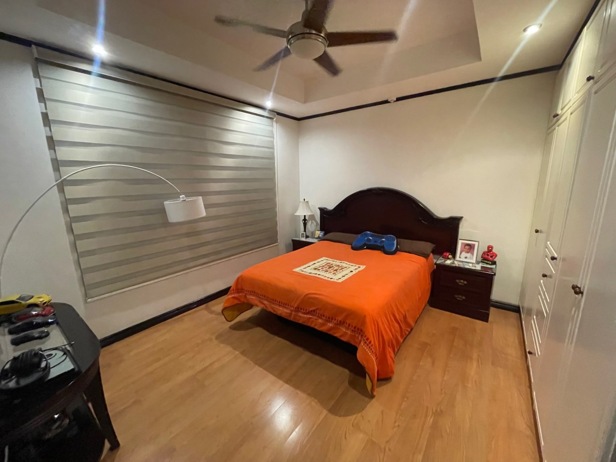 La casa presenta acabados y diseños elegantes en todas partes, se ingresa a través de una puerta metálica reforzada de seguridad a través de la entrada formal a una amplia sala de estar equipada con aire central. Al lado hay una gran cocina moderna y una sala de estar formal. Hay una gran cantidad de despensa y área de almacenamiento detrás de la cocina, junto al lavadero. En el lado opuesto de la casa hay un dormitorio principal privado con vestidor y un amplio baño principal. Los pasillos conducen a las habitaciones adicionales con sus propios baños. Todas las habitaciones están equipadas con unidades split de aire acondicionado. Encima de esta área hay un gran ático para almacenamiento adicional. Hay una idea de área adicional para una oficina o sala de televisión. En el exterior hay una atractiva piscina y un área de terraza compuesta recién terminada con una gran casa de piscina cerrada adicional con baño completo adicional.