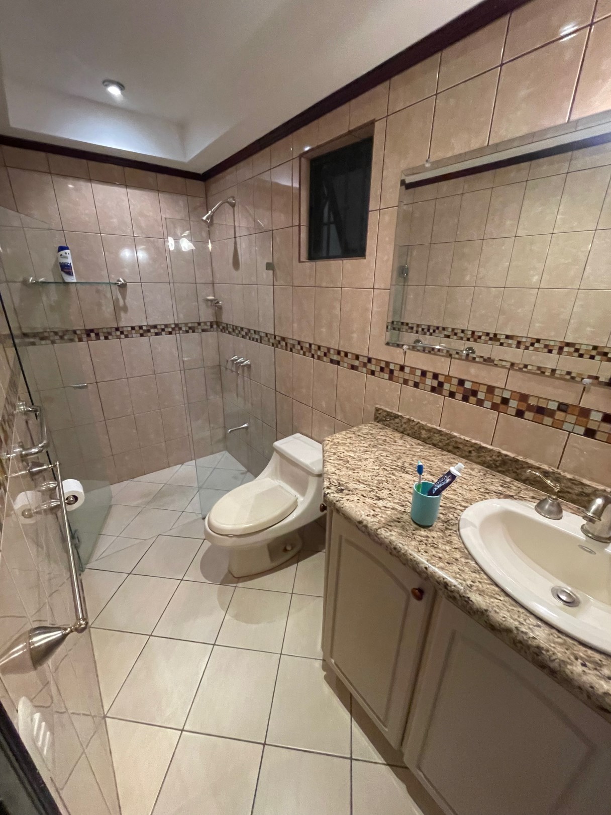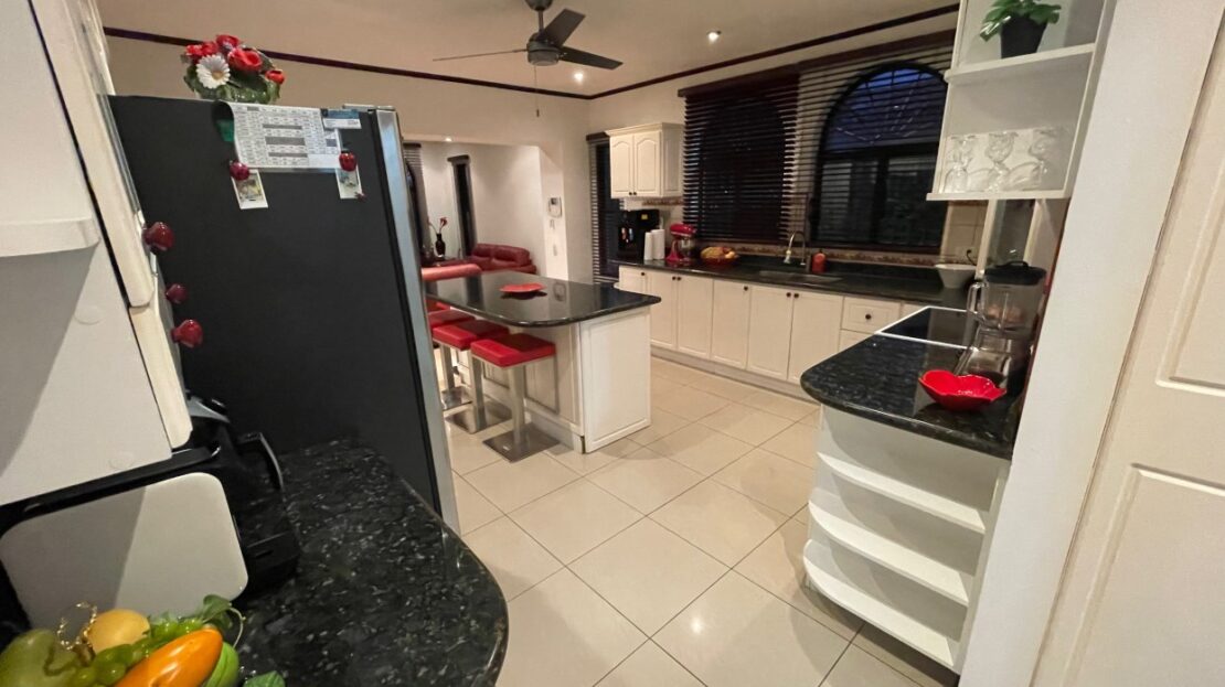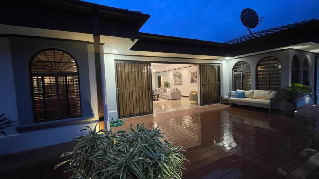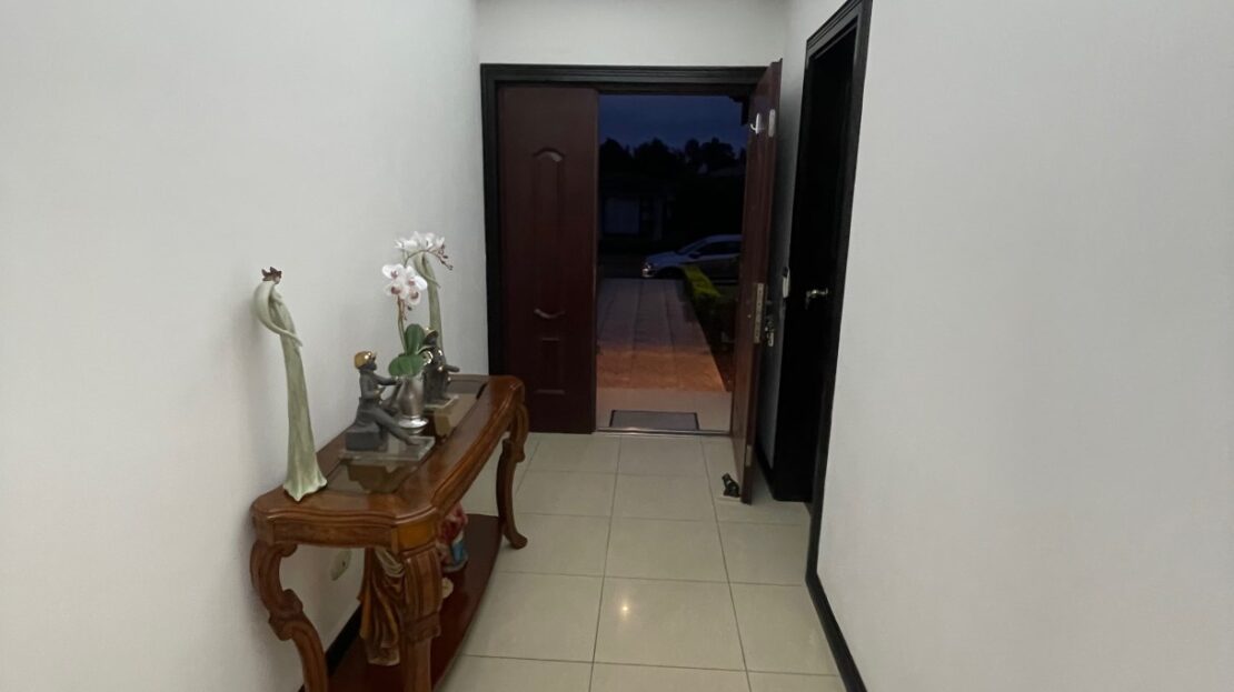 La casa presenta acabados y diseños elegantes en todas partes, se ingresa a través de una puerta metálica reforzada de seguridad a través de la entrada formal a una amplia sala de estar equipada con aire central. Al lado hay una gran cocina moderna y una sala de estar formal. Hay una gran cantidad de despensa y área de almacenamiento detrás de la cocina, junto al lavadero. En el lado opuesto de la casa hay un dormitorio principal privado con vestidor y un amplio baño principal. Los pasillos conducen a las habitaciones adicionales con sus propios baños. Todas las habitaciones están equipadas con unidades split de aire acondicionado. Encima de esta área hay un gran ático para almacenamiento adicional. Hay una idea de área adicional para una oficina o sala de televisión. En el exterior hay una atractiva piscina y un área de terraza compuesta recién terminada con una gran casa de piscina cerrada adicional con baño completo adicional.
