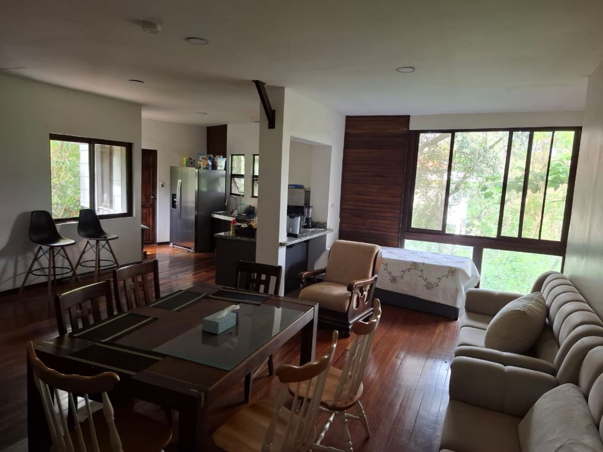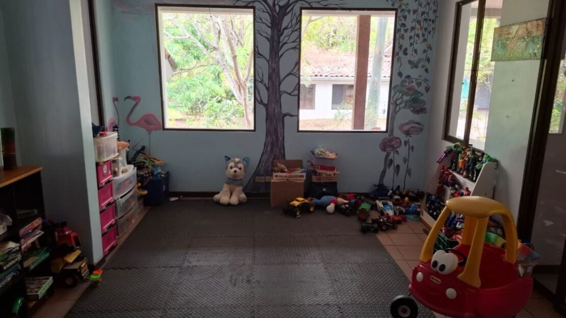 Mixed use property close to everything in La Guacima. The property currently consists of four buildings ideal for yoga studios, martial arts, small businesses, guest accommodations, etc. The site is 3300 m2, with over 620 m2 of interior space (over 800 m2 built space). It includes 4 offices of varying sizes, a large studio, currently used for martial arts, an event or restaurant space, a sports bodega, currently with a volleyball and basketball court, and a two-level, four bedroom house, looking out over the forest.
