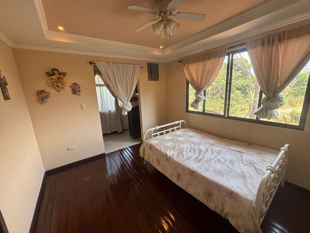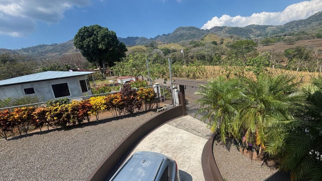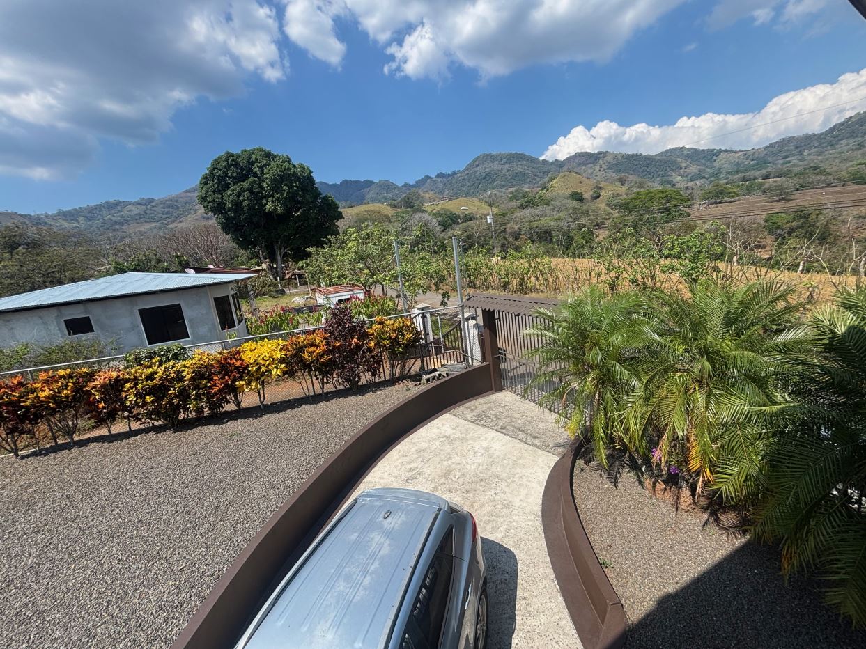 Spacious homes with nice finishes in the Atenas countryside is located less than 5 minutes from the new 27 highway on the main road running through Escobal. The home features a formal entrance and side entrance from the parking area. There is a roomy living room, dining room and nice size kitchen. There is a master suite with bathroom, two guest bedrooms with shared bath, a second living room on the second floor and a large area for a large office, workshop, etc. There are nice views of the area mountains. Adjacent to the property is a gated entrance to be able to access the land behind the home that can be additionally developed.