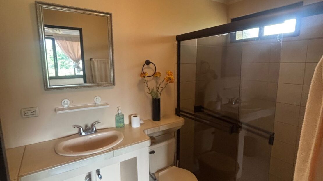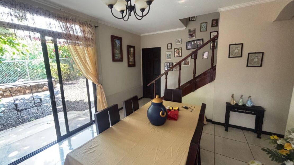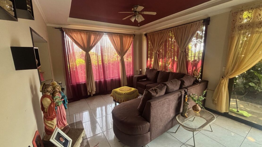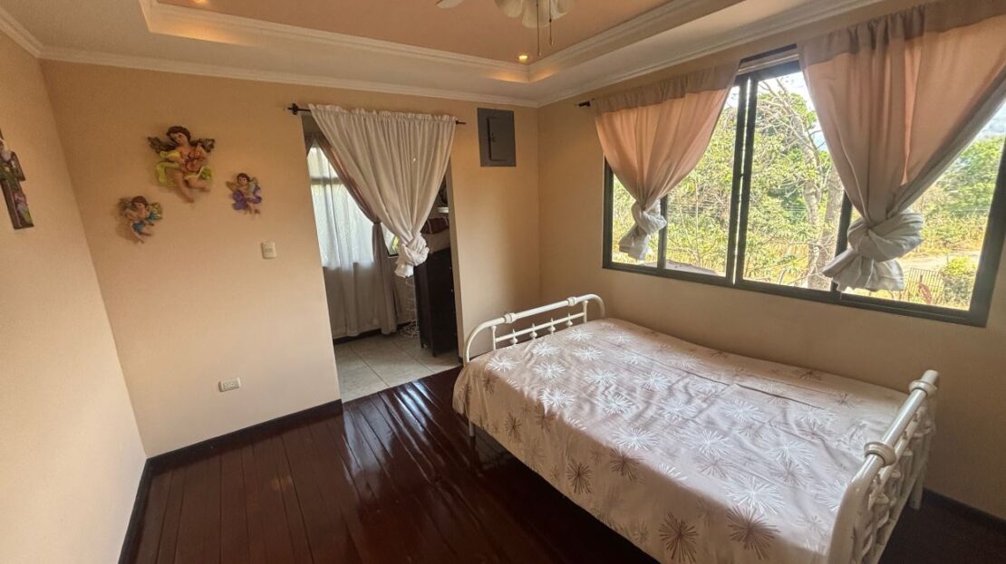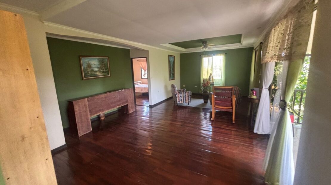 Spacious homes with nice finishes in the Atenas countryside is located less than 5 minutes from the new 27 highway on the main road running through Escobal. The home features a formal entrance and side entrance from the parking area. There is a roomy living room, dining room and nice size kitchen. There is a master suite with bathroom, two guest bedrooms with shared bath, a second living room on the second floor and a large area for a large office, workshop, etc. There are nice views of the area mountains. Adjacent to the property is a gated entrance to be able to access the land behind the home that can be additionally developed.