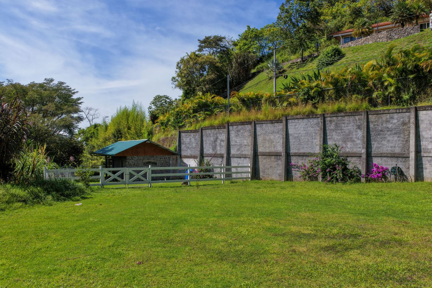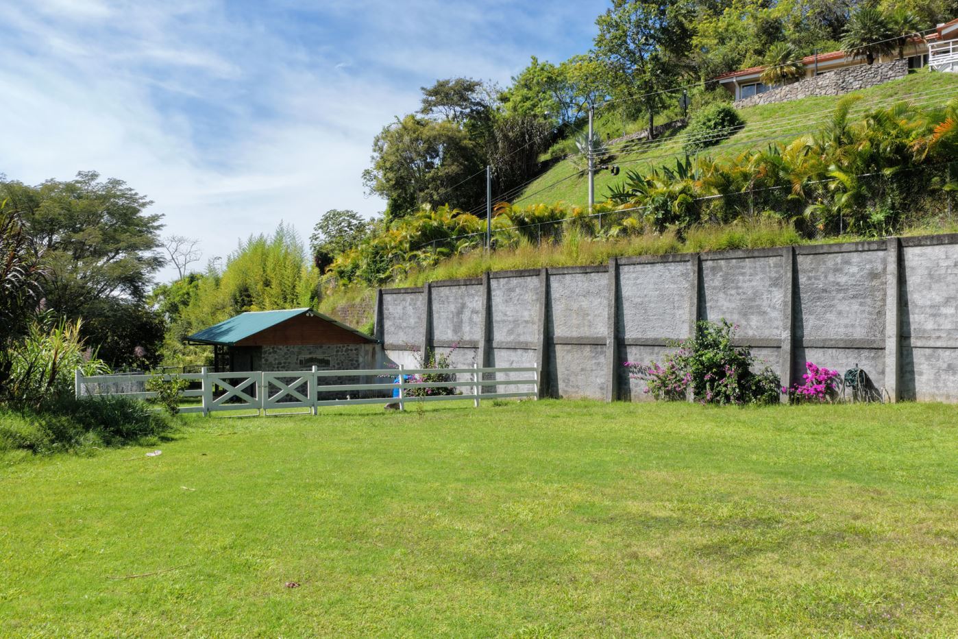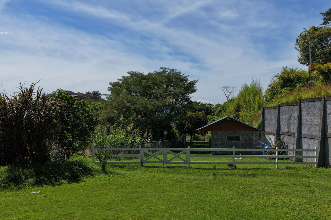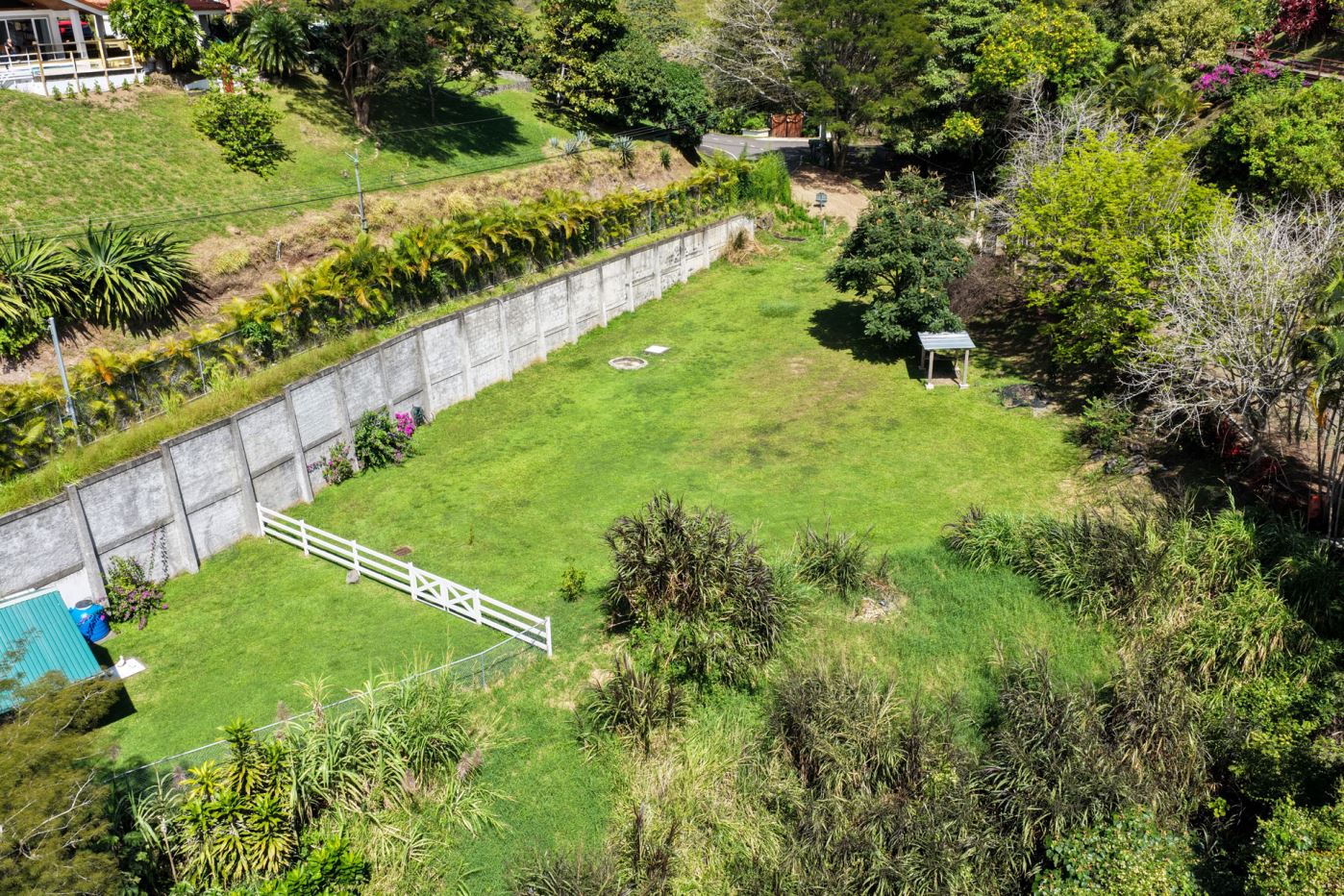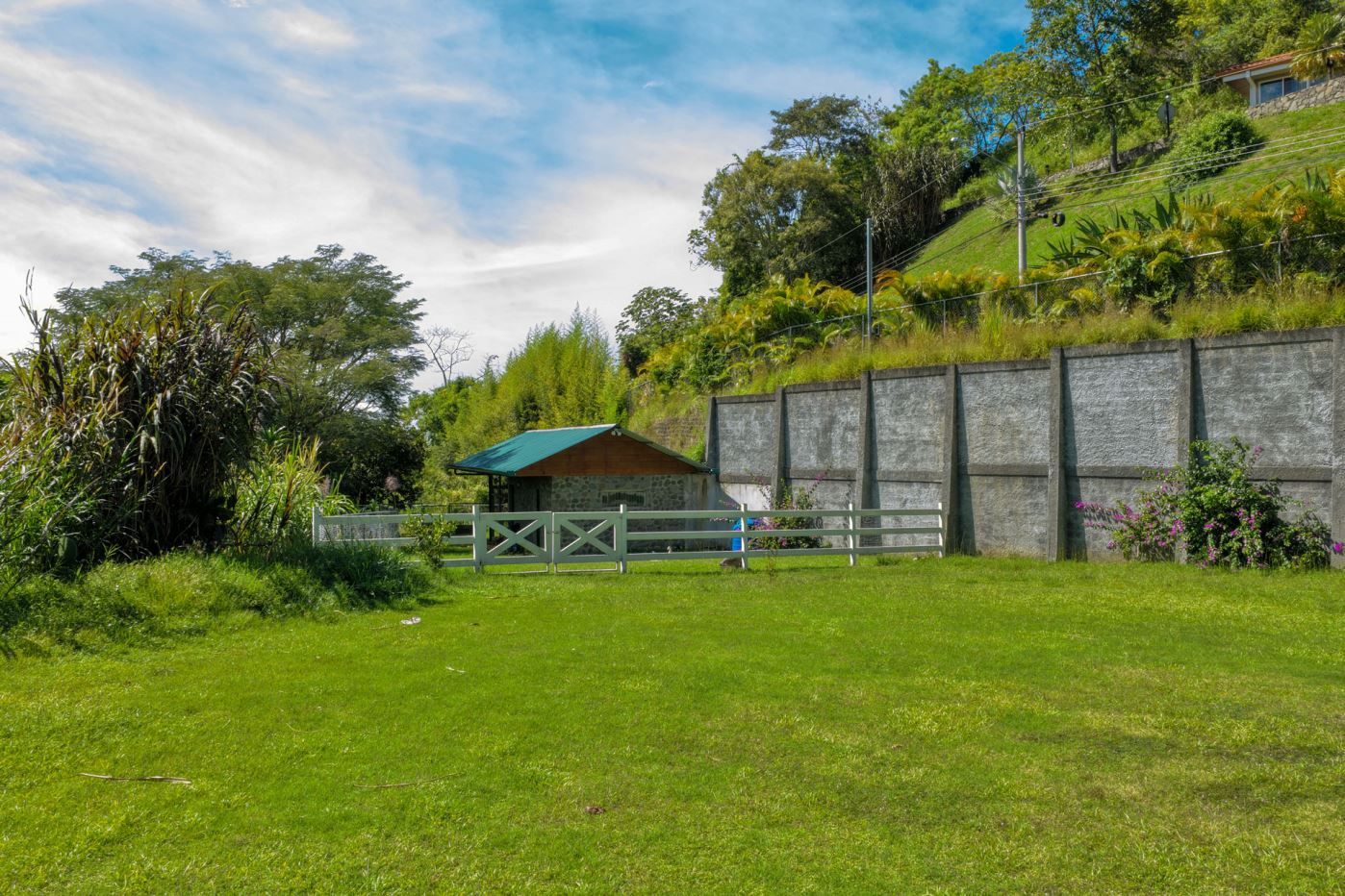 This lot is located in the private and exclusive community of Hacienda Atenas and features present infrastructure including a barn or small starter home. There is plenty of space for larger builds with a nice view of the area mountains. There is electric and water connected at the property with a present sprinkler system.