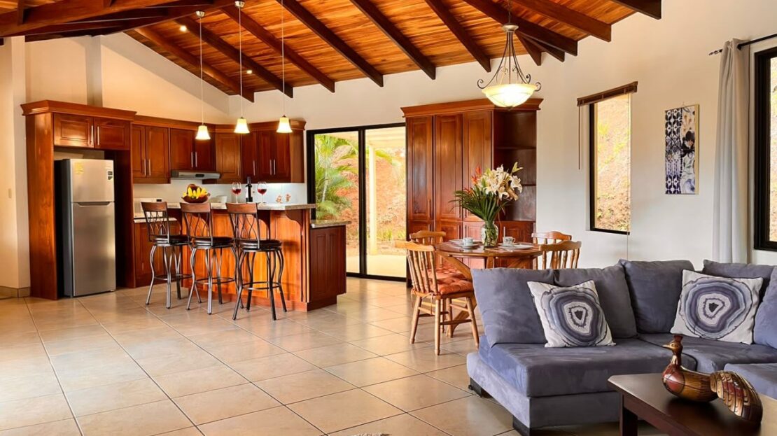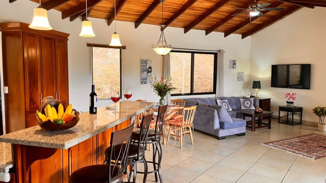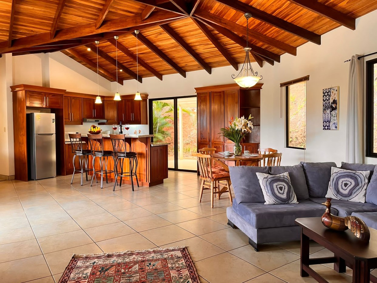 Hermosa casa en Roca Verde comunidad cerrada, ubicada de manera segura cerca de la puerta de guardia, cuenta con excelentes vistas de las montañas de la zona y está rodeada de un paisaje exuberante. La casa cuenta con mucha carpintería artesanal en todas partes, incluidos los techos interiores y exteriores. La gran y acogedora terraza conduce a una bañera de hidromasaje con un patio lateral adicional, ideal para una futura piscina. La terraza conduce a un plano de planta abierto con sala, comedor y amplia cocina moderna. Hay dos suites en cada extremo con baño y un porche cubierto en el patio trasero. También hay un garaje cerrado adjunto. ¡Tu nuevo hogar esperándote en Atenas!