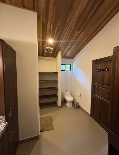 Nicely designed custom built home in a countryside setting features big mountain views with some city views in the Atenas-based gated community of Vistas Al Rio Grande, located 15 minutes from Atenas Center and just as far from the new highway 27. The furnished and turn-key home showcases an open floor plan with a large living and dining area with an adjacent custom-buit office area making it easy to work from home. The kitchen features like new appliances throughout. The formal entry leads to a guest bedroom and a jack and jill guest bathroom that leads to the second guest room. Towards the opposite end of the home one finds an ample master bedroom and bathroom suit with plenty of closet areas. There is custom woodwork throughout the ample kitchen, bathrooms, wooden doors and the tall artesenal wood worked ceilings.
