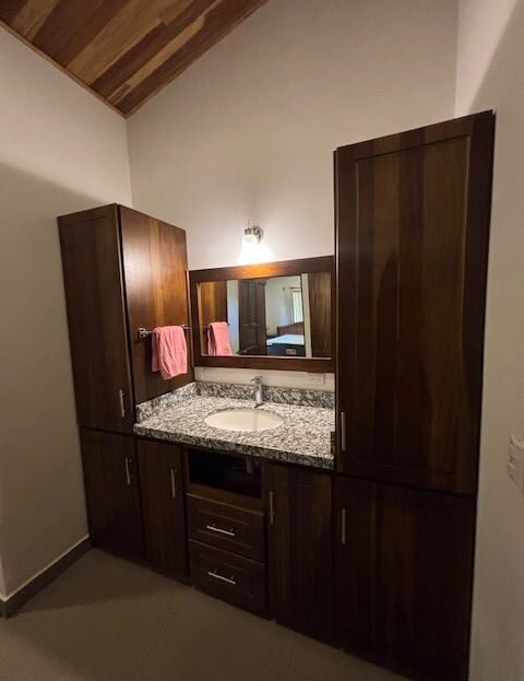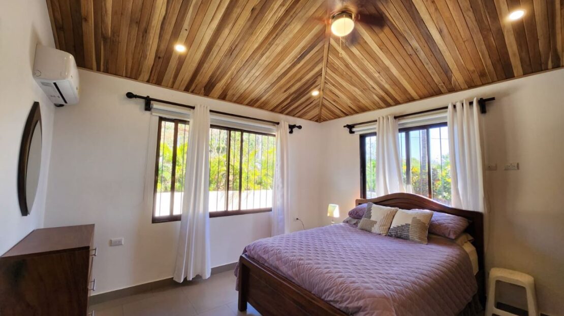 Casa de diseño elegante y construcción personalizada en un entorno rural con impresionantes vistas a las montañas y a la ciudad, ubicada en la comunidad privada de Vistas al Río Grande, en Atenas, a 15 minutos del centro de Atenas y a la misma distancia de la nueva carretera 27. La casa, amueblada y lista para entrar a vivir, presenta un diseño abierto con una amplia sala de estar y comedor, y una oficina adyacente, hecha a medida, que facilita el teletrabajo. La cocina cuenta con electrodomésticos nuevos. La entrada formal conduce a un dormitorio de invitados y a un baño completo que conecta con el segundo dormitorio. En el extremo opuesto de la casa se encuentra un amplio dormitorio principal con baño en suite y amplios armarios. La cocina, los baños, las puertas de madera y los altos techos de madera artesanal cuentan con carpintería personalizada.