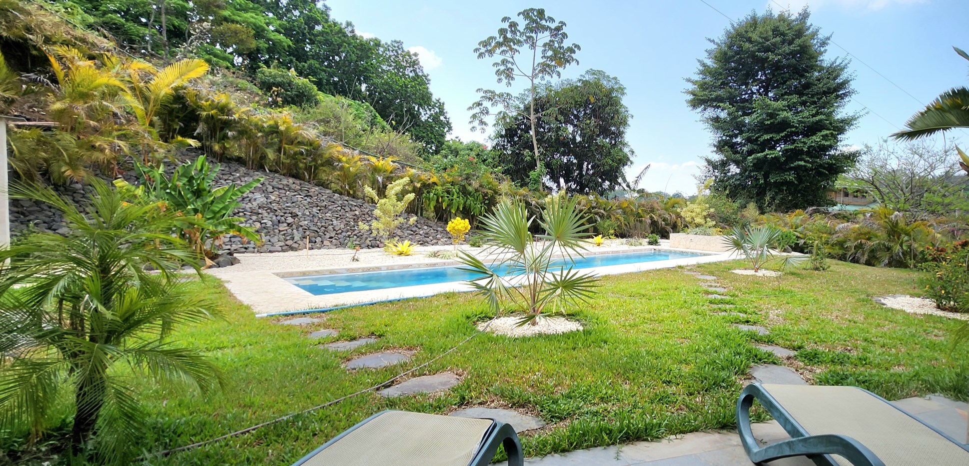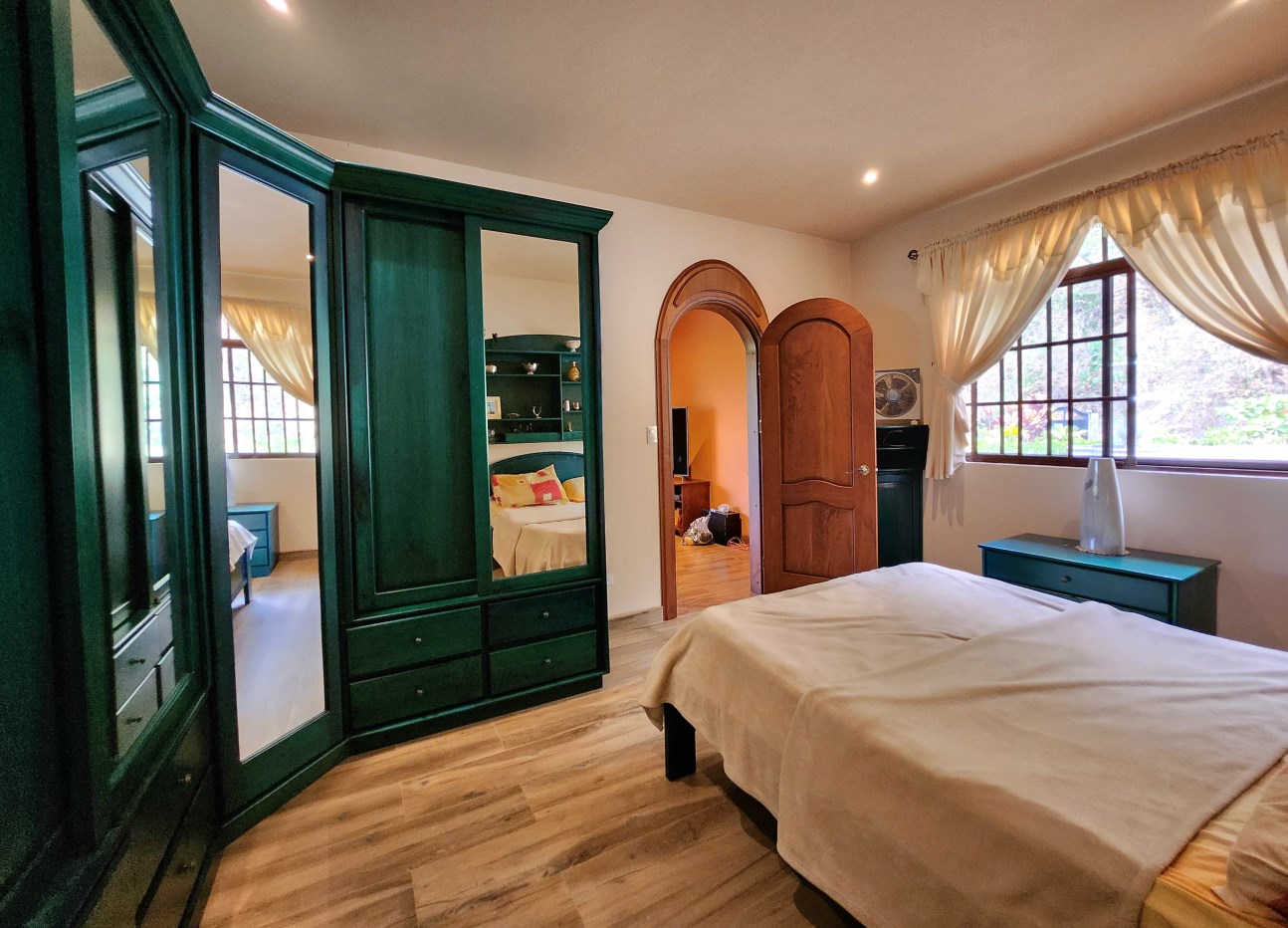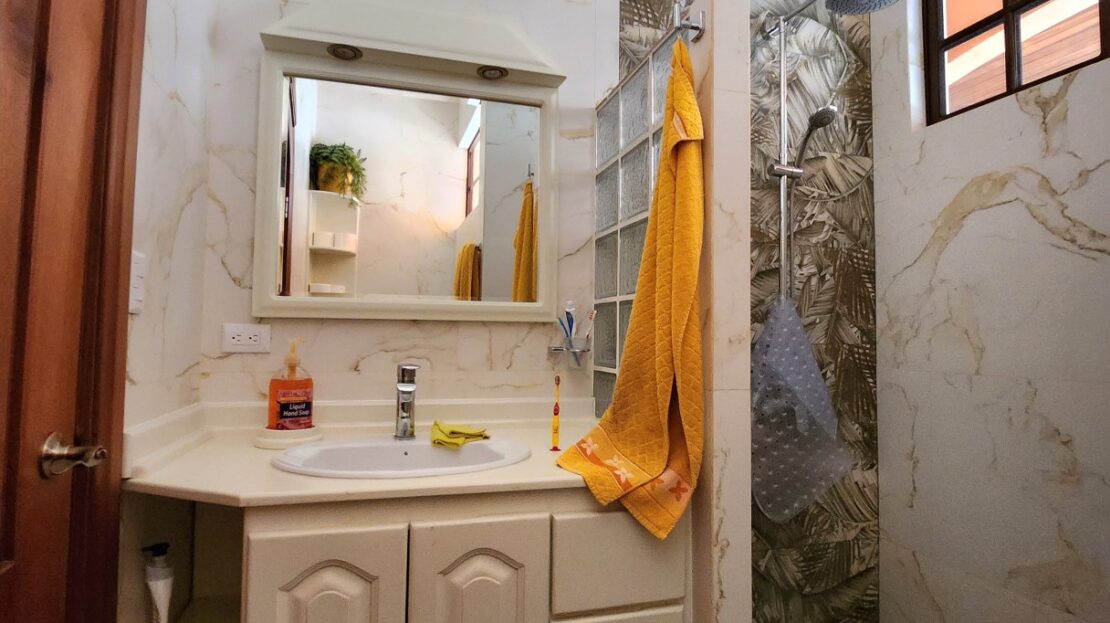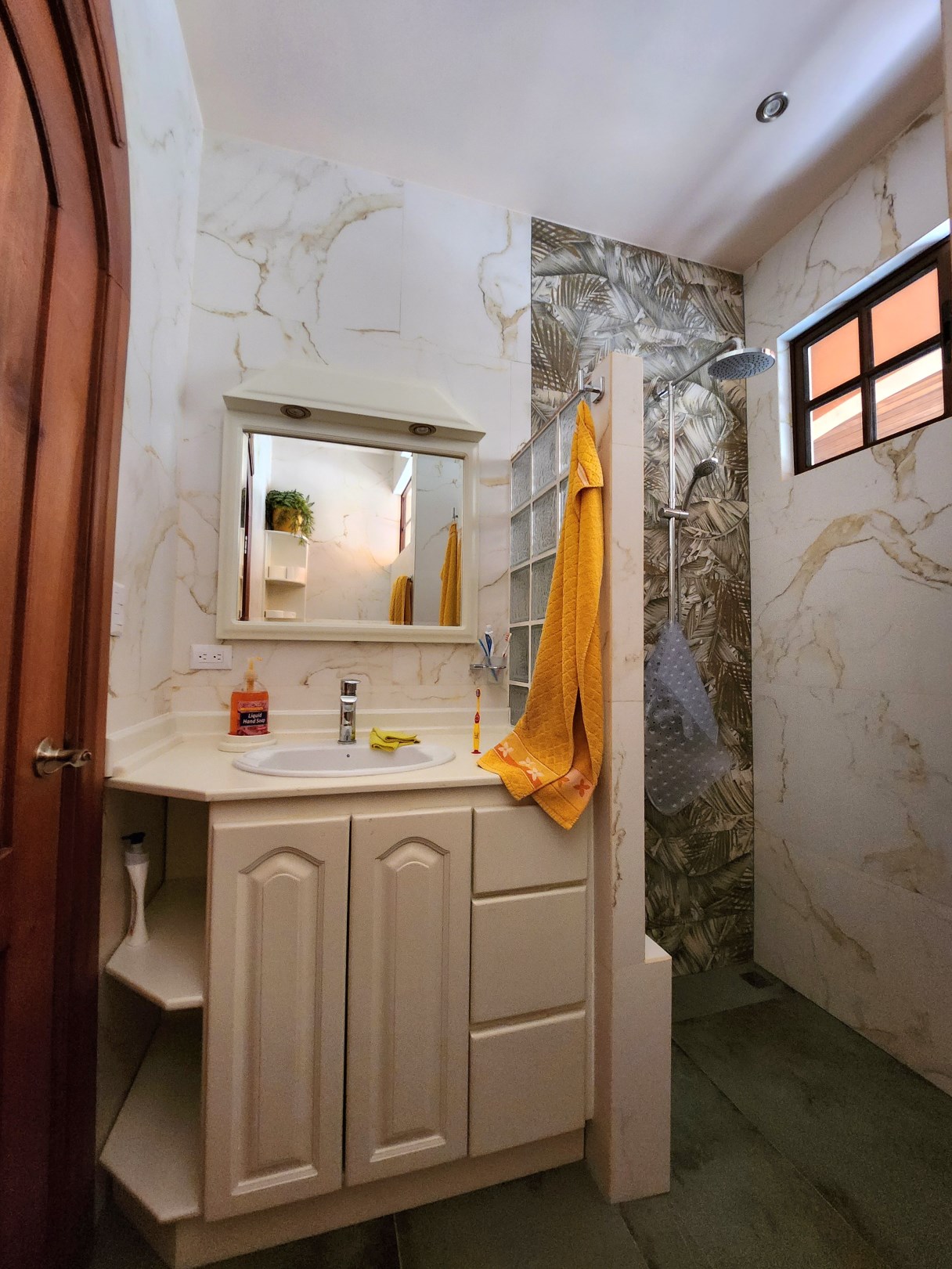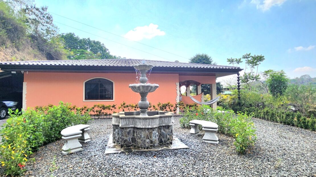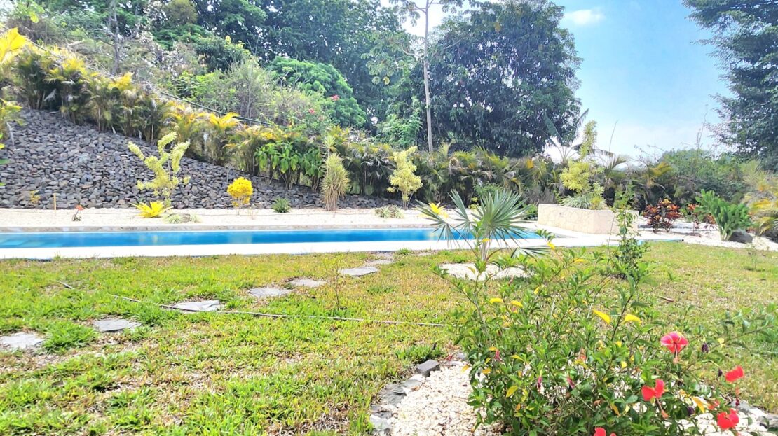 Esta casa recientemente construida en 2024 de buena calidad se encuentra en una cerrada con alrrededor de 10 propiedades con agua propia de la comunidad (pozo) . Esta casa tiene sistema de baterias para sistema electrico como backup si hay apagones, ademas de alarma, camaras de seguridad e intercomunicador en el porton.Aún hay mucho espacio en la propiedad para aparcamiento, casa de huespedes, mas jardín, etc. Al llegar a casa te recibirá una hermosa fuente de agua donde puedes sentarte a contemplar las aves o ver el atardecer. Y en el patio trasero encoentraras la piscina ademas de más jardin, no necesitas molestarte de abrir o cerrar llaves de agua, tanto la fuente como la piscina funcionan con timer automatico.La piscina mide 12m2 en total, 2.60m ancho y 1.60 profundidad.La casa tiene acabados en madera dura en puertas, closets, puertas, cielorazo….
