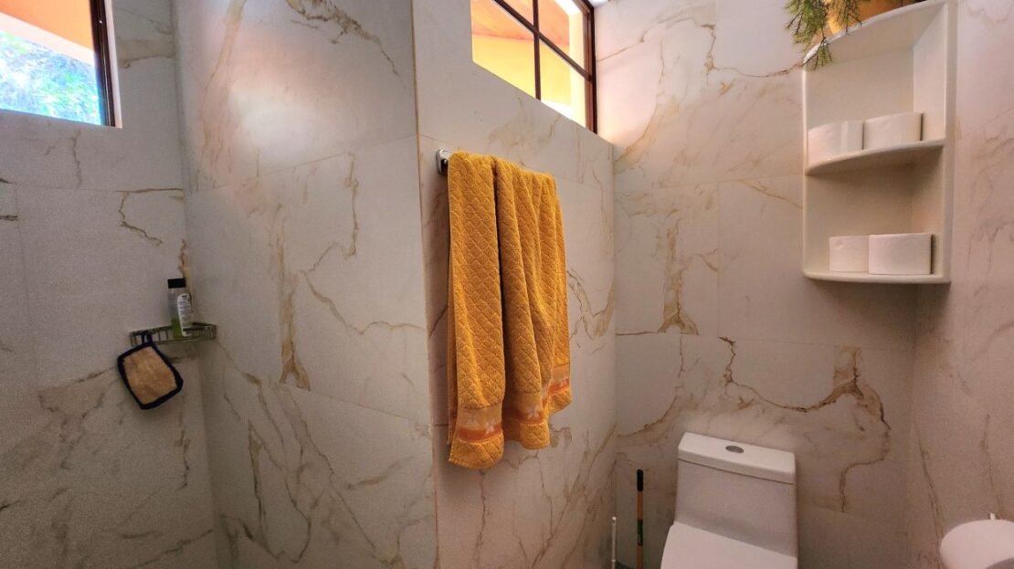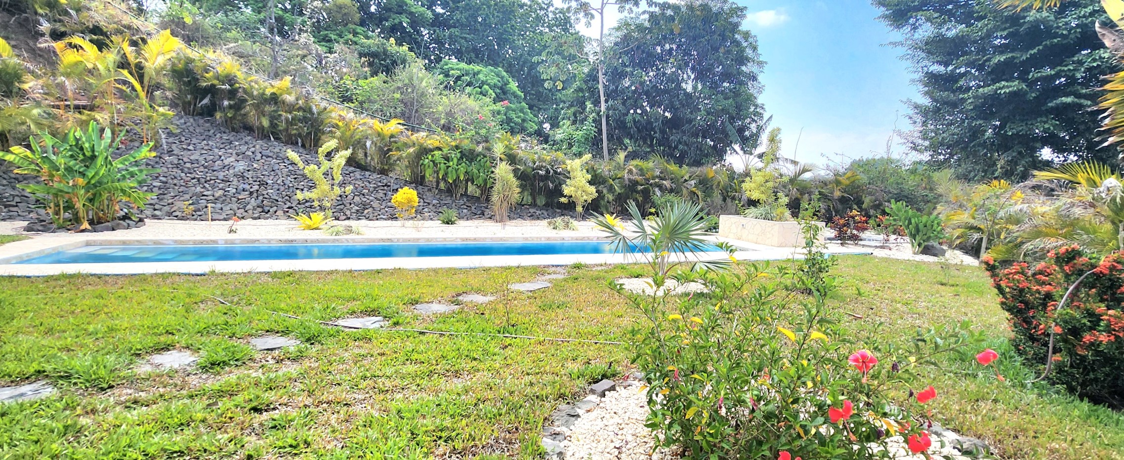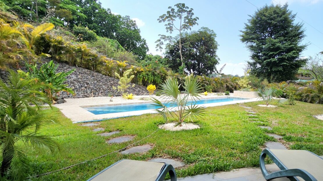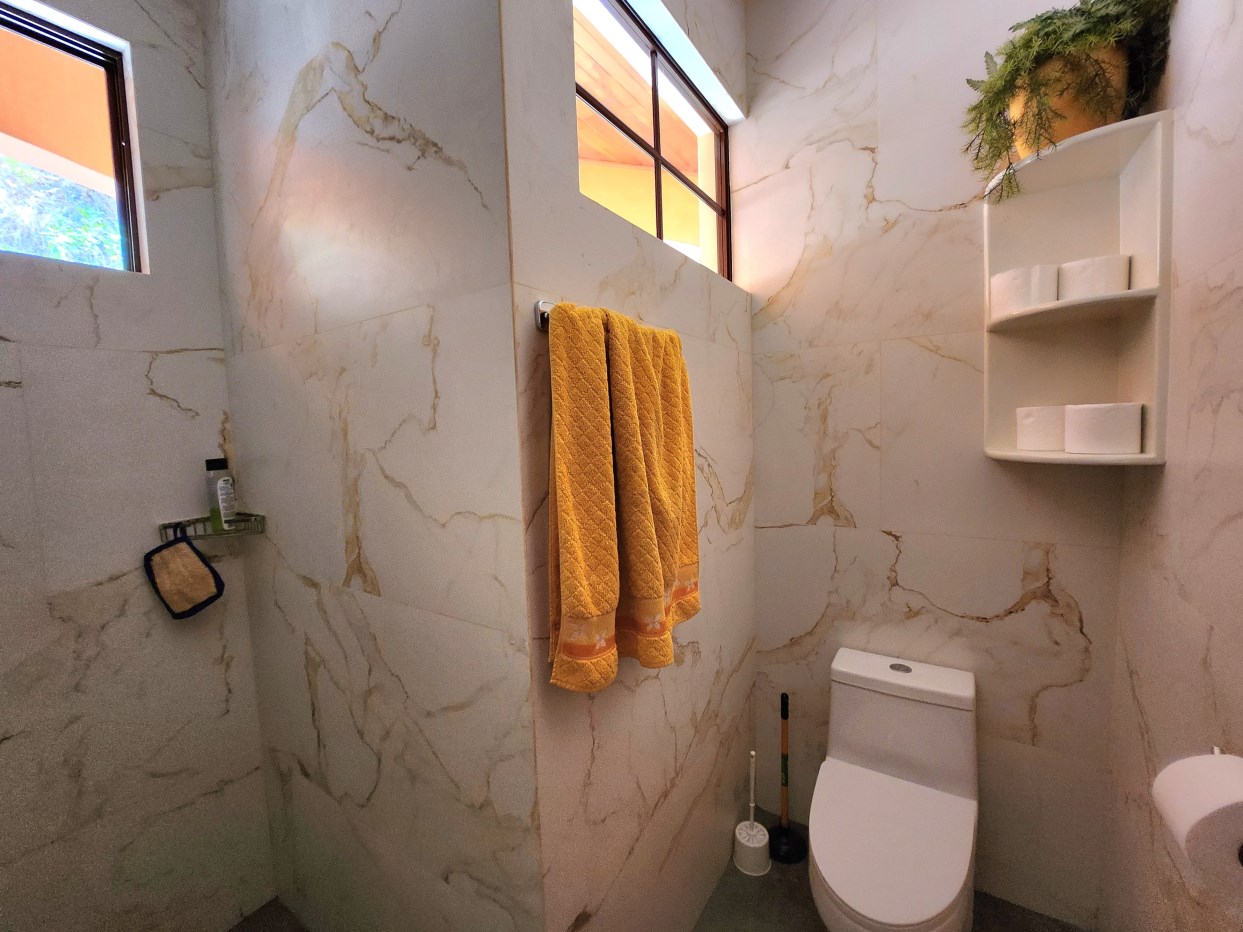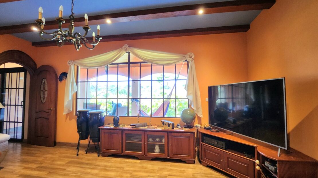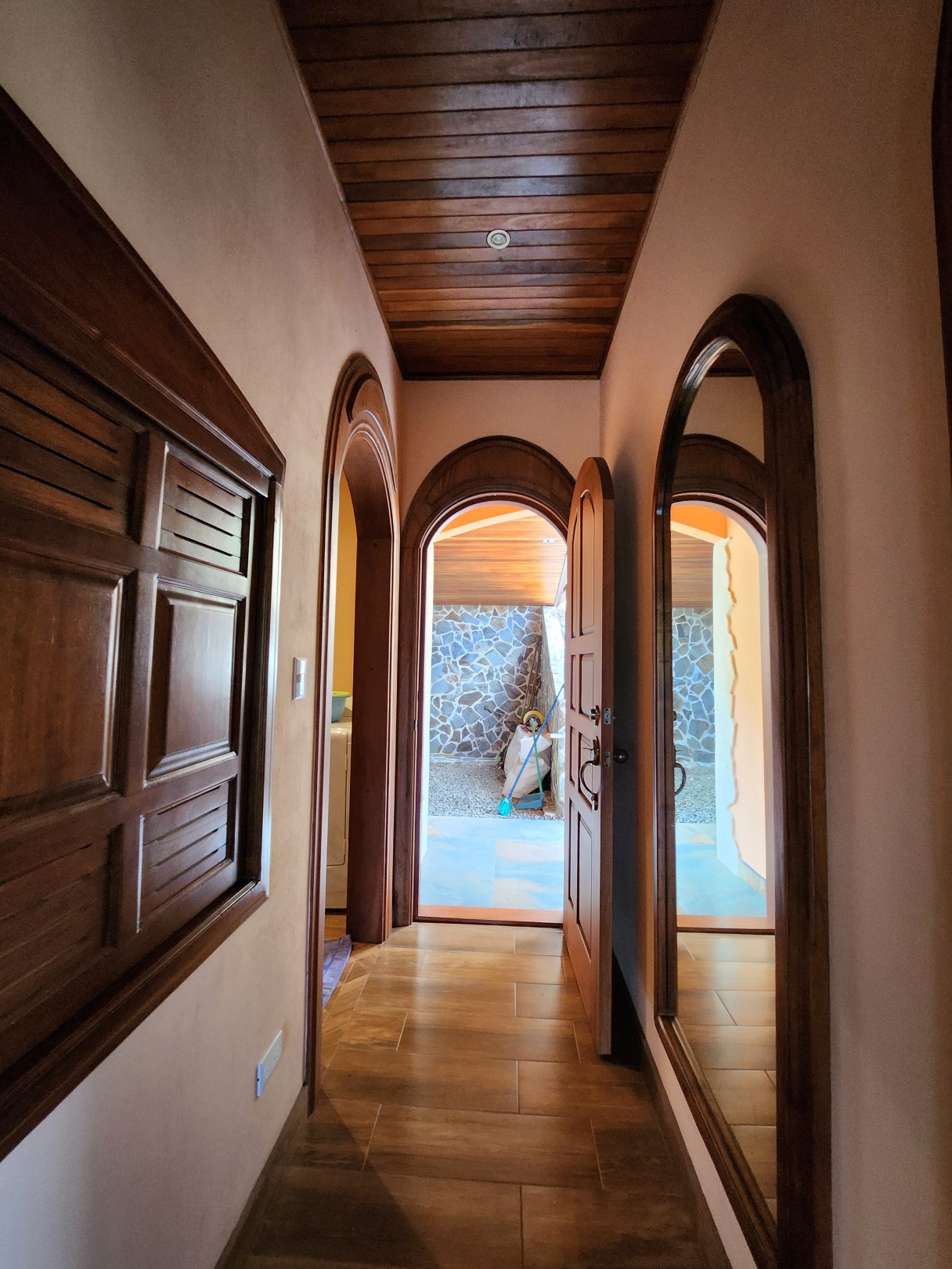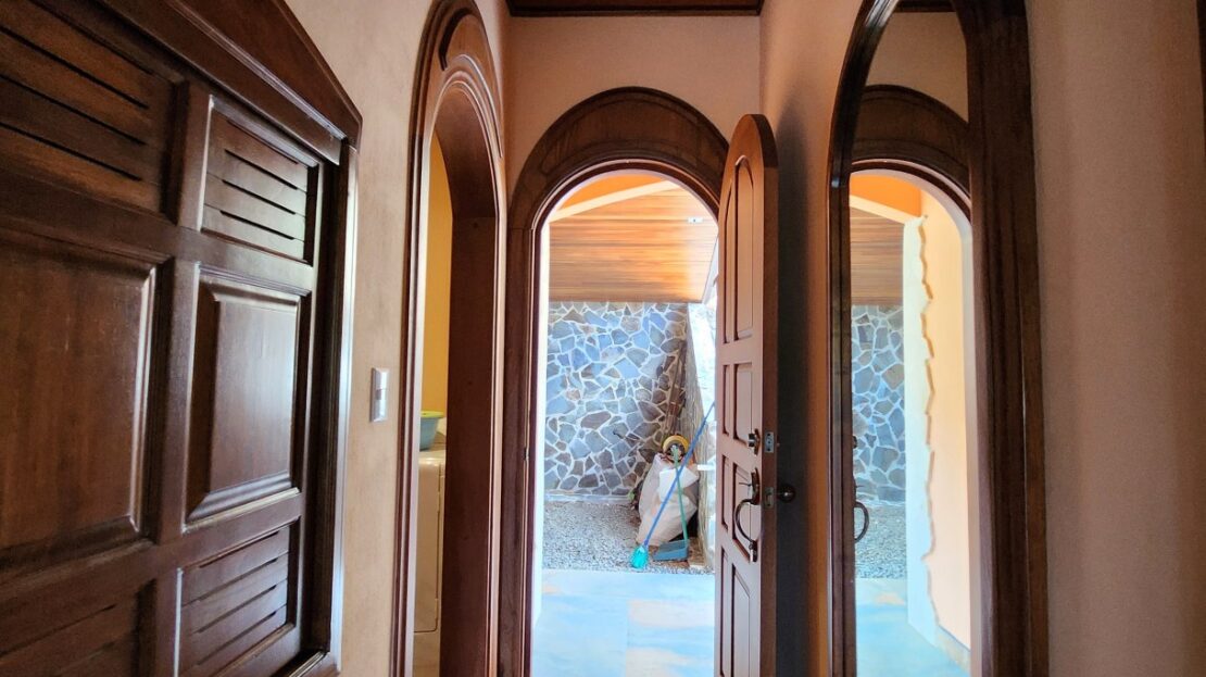 Esta casa recientemente construida en 2024 de buena calidad se encuentra en una cerrada con alrrededor de 10 propiedades con agua propia de la comunidad (pozo) . Esta casa tiene sistema de baterias para sistema electrico como backup si hay apagones, ademas de alarma, camaras de seguridad e intercomunicador en el porton.Aún hay mucho espacio en la propiedad para aparcamiento, casa de huespedes, mas jardín, etc. Al llegar a casa te recibirá una hermosa fuente de agua donde puedes sentarte a contemplar las aves o ver el atardecer. Y en el patio trasero encoentraras la piscina ademas de más jardin, no necesitas molestarte de abrir o cerrar llaves de agua, tanto la fuente como la piscina funcionan con timer automatico.La piscina mide 12m2 en total, 2.60m ancho y 1.60 profundidad.La casa tiene acabados en madera dura en puertas, closets, puertas, cielorazo….