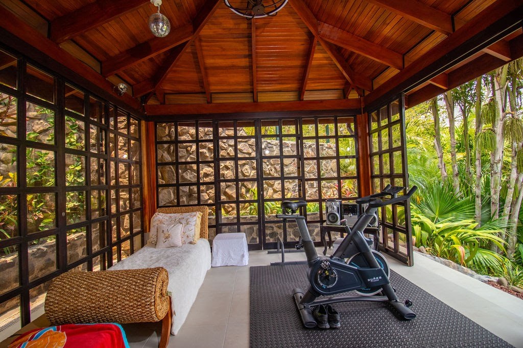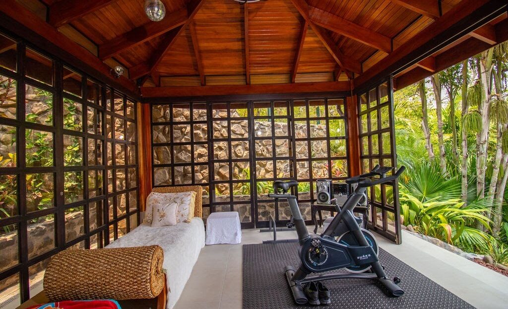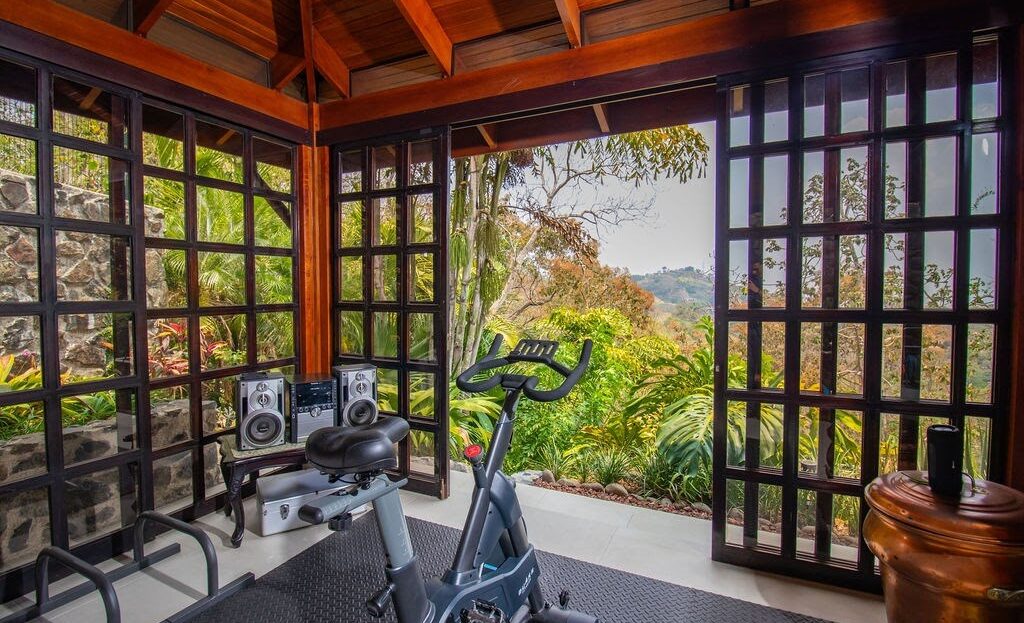 ¿Necesita un espacio dedicado a la reflexión o al rejuvenecimiento? Descubra un pabellón tranquilo rodeado por puertas corredizas de vidrio. Este espacio versátil se puede transformar en su propia sala de meditación privada, un paraíso para la práctica de yoga o una sala de ejercicios llena de luz con impresionantes vistas a las montañas como telón de fondo.