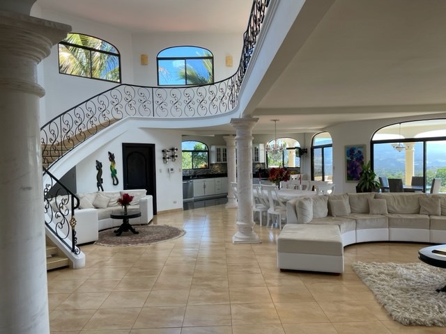 Elegant Atenas estate & functioning coffee farm.A beautifully furnished home with luxurious finishes and modern amenities.This two story furnished home features an open floor plan that includes a fully equipped chef’s kitchen and spacious dining room / living room areas that lead to the terrace and infinity pool overlooking the city. Two large suites are located on the ground floor and a third master suite is on the second floor. Each suite includes private bathrooms and walk-in-closets. Two additional independent identical wings with 1 bedroom/1 bathroom suite are found on each side of the main home. Finishes include an ample amount of marble, granite, exotic hardwoods and custom iron work. The estate also includes a fully furnished two-bedroom guesthouse for a caretaker or friends / family visiting from out of town.Almost 10 acres with beautiful landscaping bordering the cajon river with a fully functioning coffee plantation made up of 10,000 coffee plants that produce 10,000 coffee bags on site using an experienced crew making this agricultural project fully turn key. The 9.8 acre property is completely fenced and located at the end of a private road. The beautiful Rio Cajon flows on the border of the property. A cabin made from exotic wood overlooks the river and includes fresh water, electricity, and a full bath. The grounds include paved internal roads and beautifully landscaped gardens with over 200 fruit trees (Mango, lemon, lime, bananas, tangerines, orange and coconut palm trees) and extensive lawns. A private well feeds two 10,000-liter water tanks to supply fresh water for the main home, guest house and landscaping. An added hobbit style home can be found near the river and a picturesque path leads to a total 1km hike bordering the river with an amazing private waterfall and river (80ft) bordering the property. Added amenities include an olympic size tennis court and butterfly garden.The property can be purchased turn-key including furniture, appliances, coffee tools and if a buyer would want to keep the present employees.