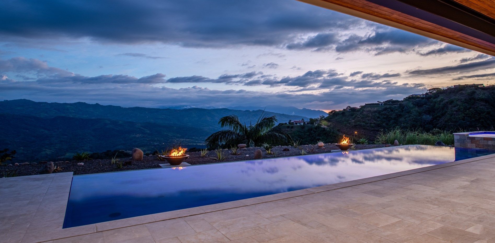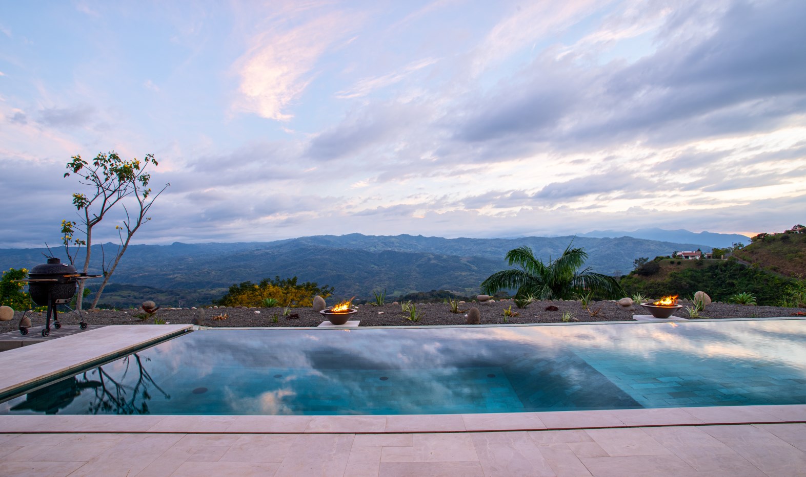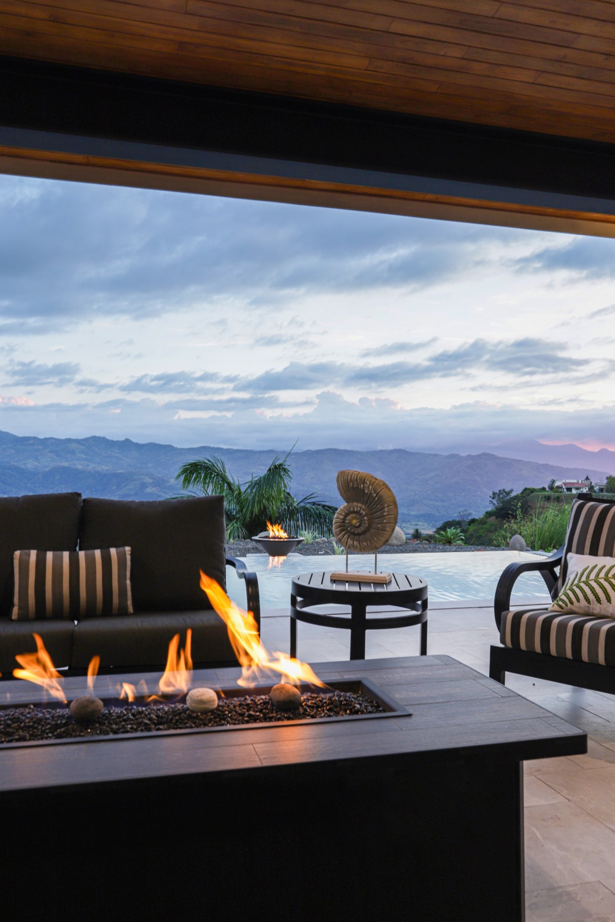 The breathtaking surroundings also feature a Pentair pool system-supported 12.5 meter salt water, infinity edge pool with a 2.5 meter deep end. An IntelliCenter® control panel allows remote control features for the pool and spa, such as multi-colored pool lights and fire bowls.