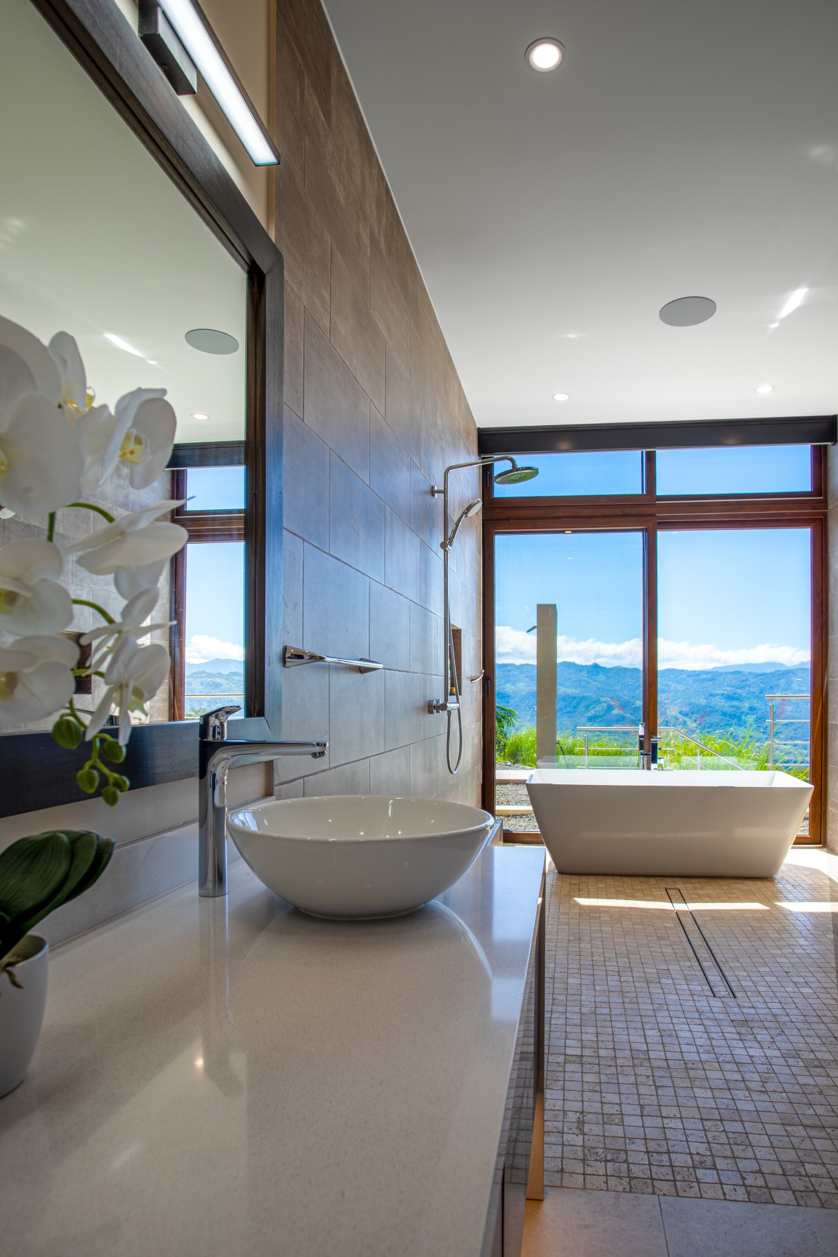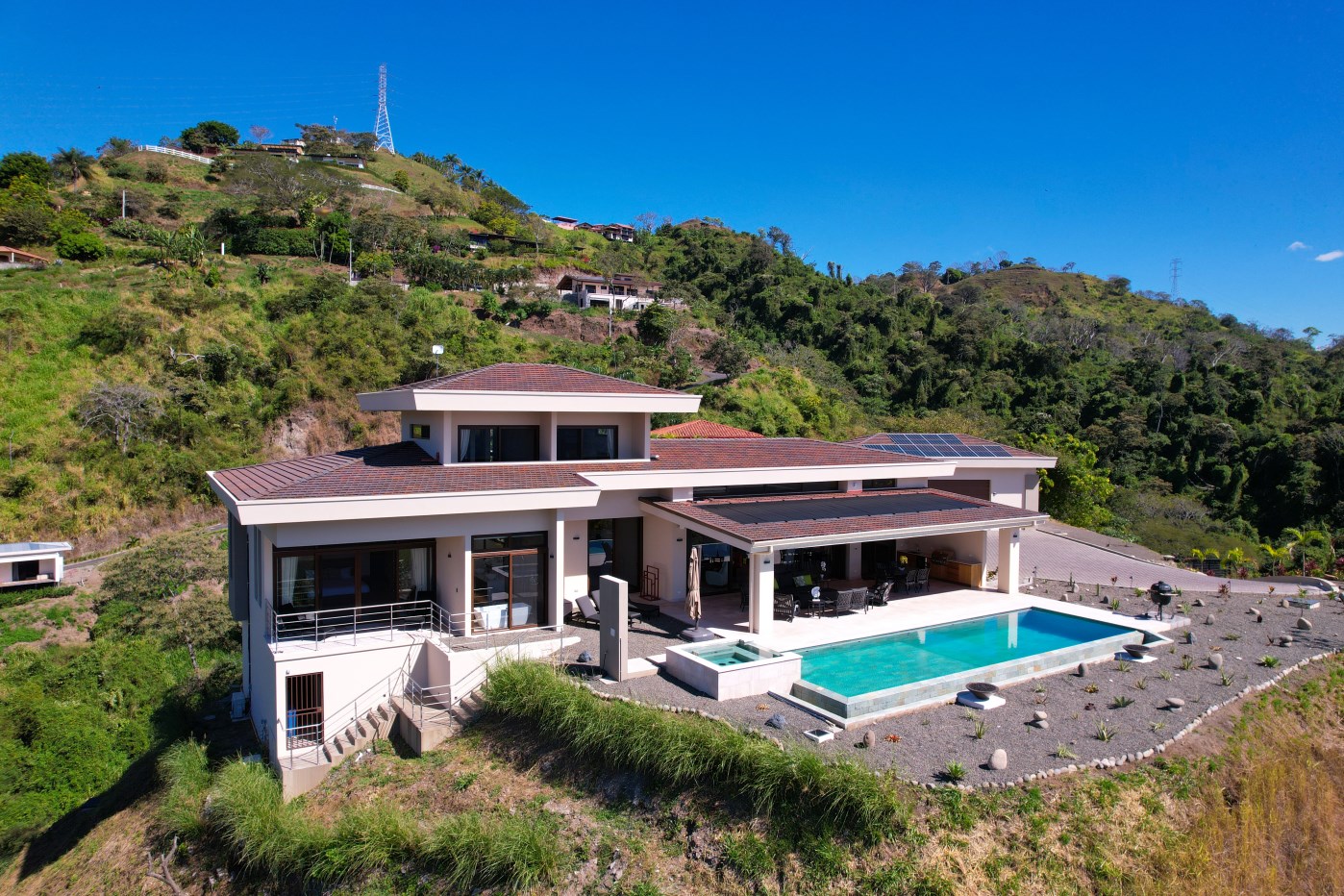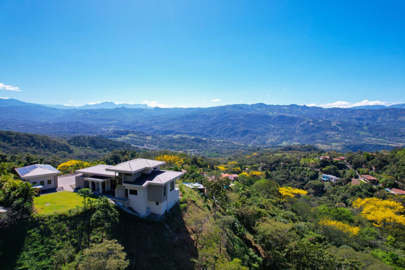 While driving through the motorized gate and up the paving stone driveway to your new, fully furnished, two-floor, security system-equipped, Control4 smart home, you’ll be welcomed with spectacular views of Costa Rica’s Central Valley and beautiful mountains.