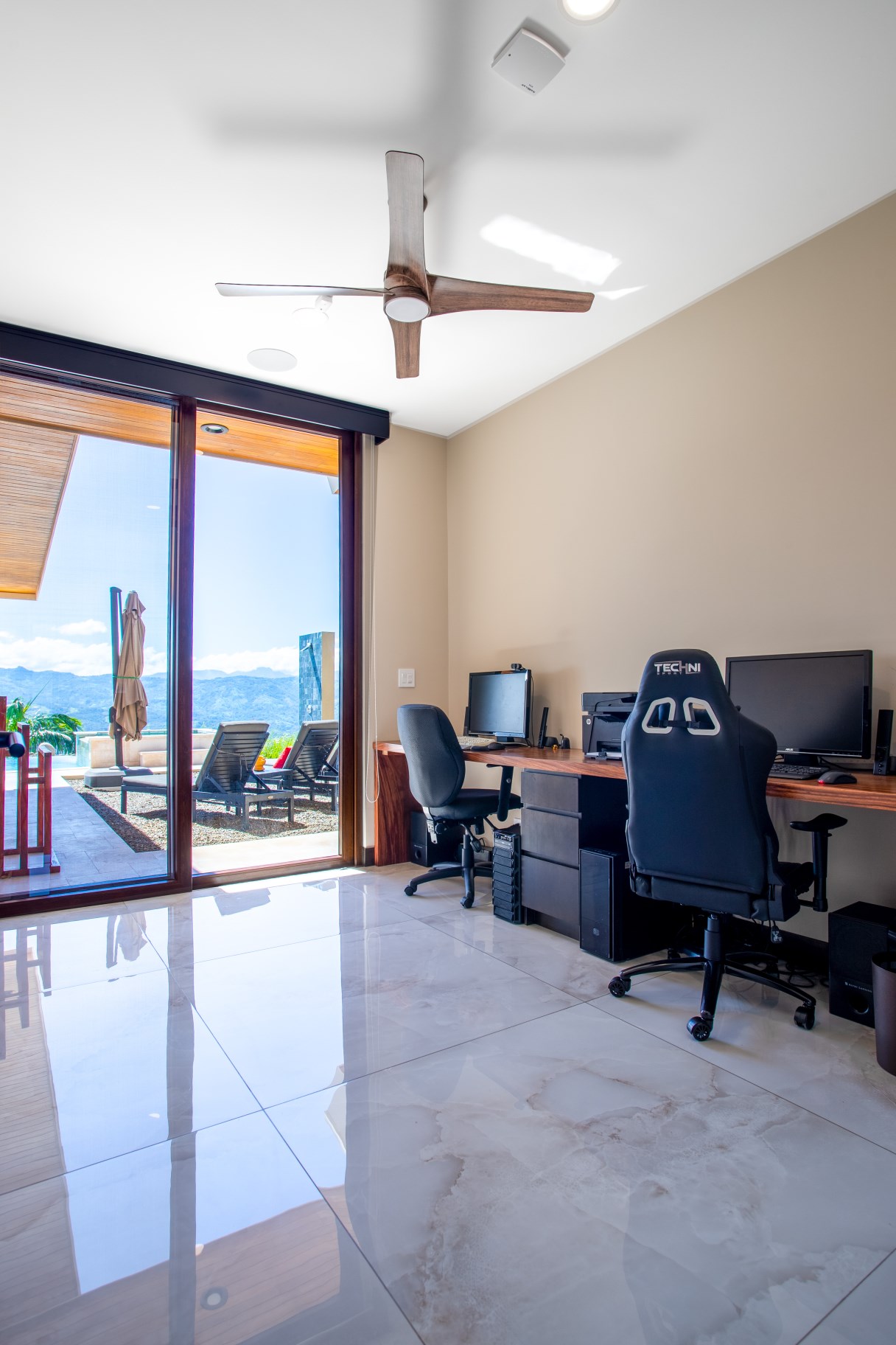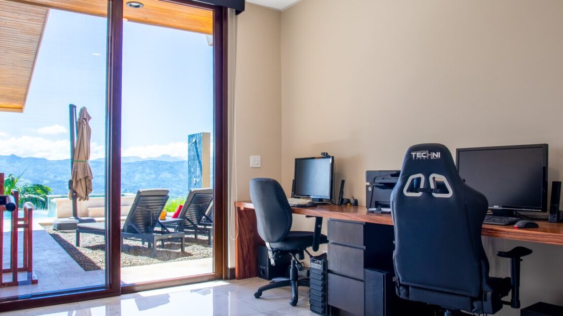 The large office (spare bedroom) contains a custom-made Guanacaste desk with two work areas.