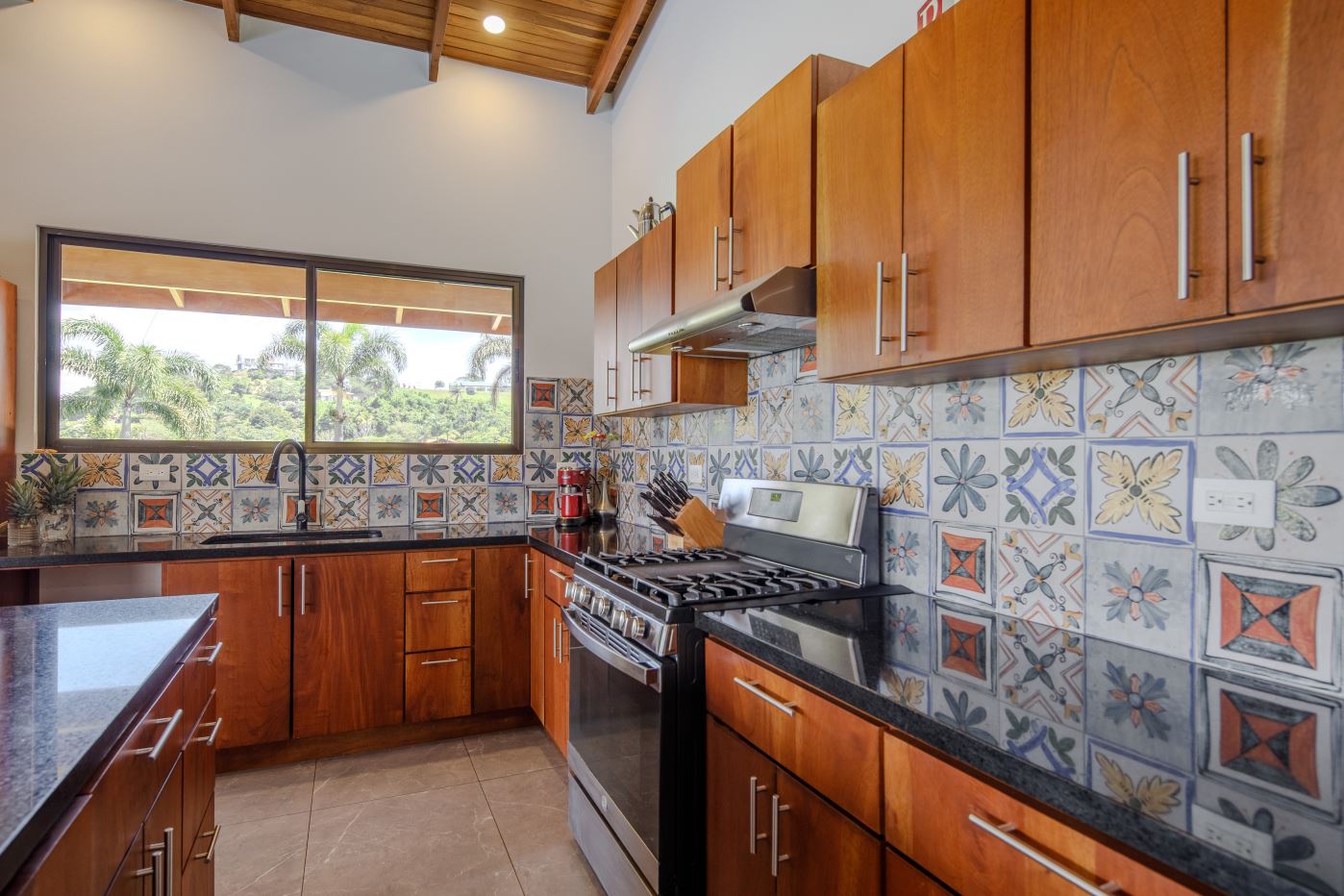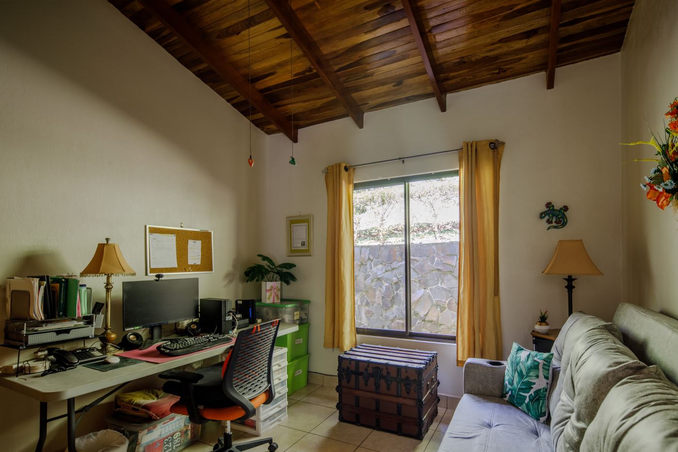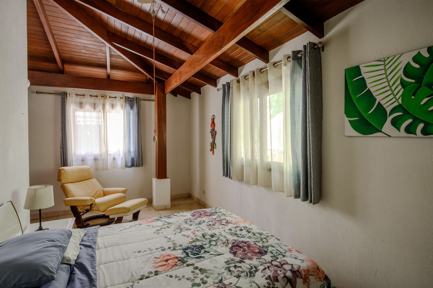 At the opposite end of the property is the smallest 170m2 guest home with its own independent entrance that leads way to a nicely laid out 2 bedroom/2 bathroom home also deisgned with artesenal woodwork thoughout with a small porch area with plenty of room to sit under roof. The home has a nice size side porch area with its own manicured gardens. This home is sold fully-furnished with appliances.